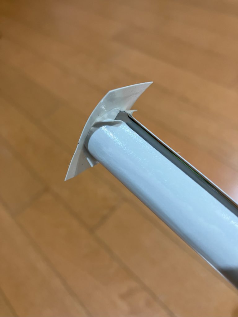 両面テープは「らせん巻き」と「縦巻き」がありますが、それほど時間がかからないのと、事前に予習したyoutubeでも半分以上は縦巻きをお勧めしていたので、私も縦巻きとしました。