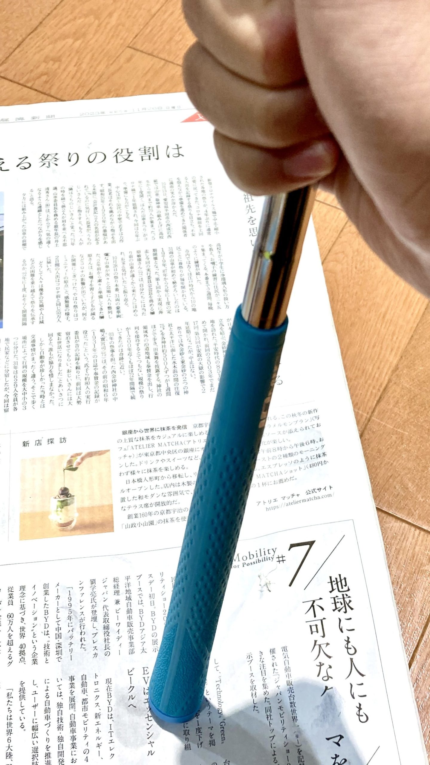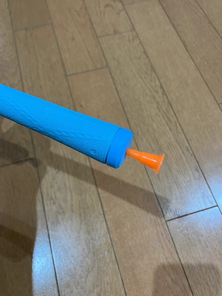 また、グリップエンドの穴を下記のようにティーなどでふさいで、中に溶液を吹き込みます。大体3~4秒ぐらいで十分です。