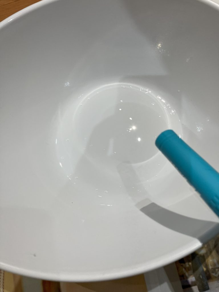 その後、下記のようにたらいにグリップ内の溶液を出します。